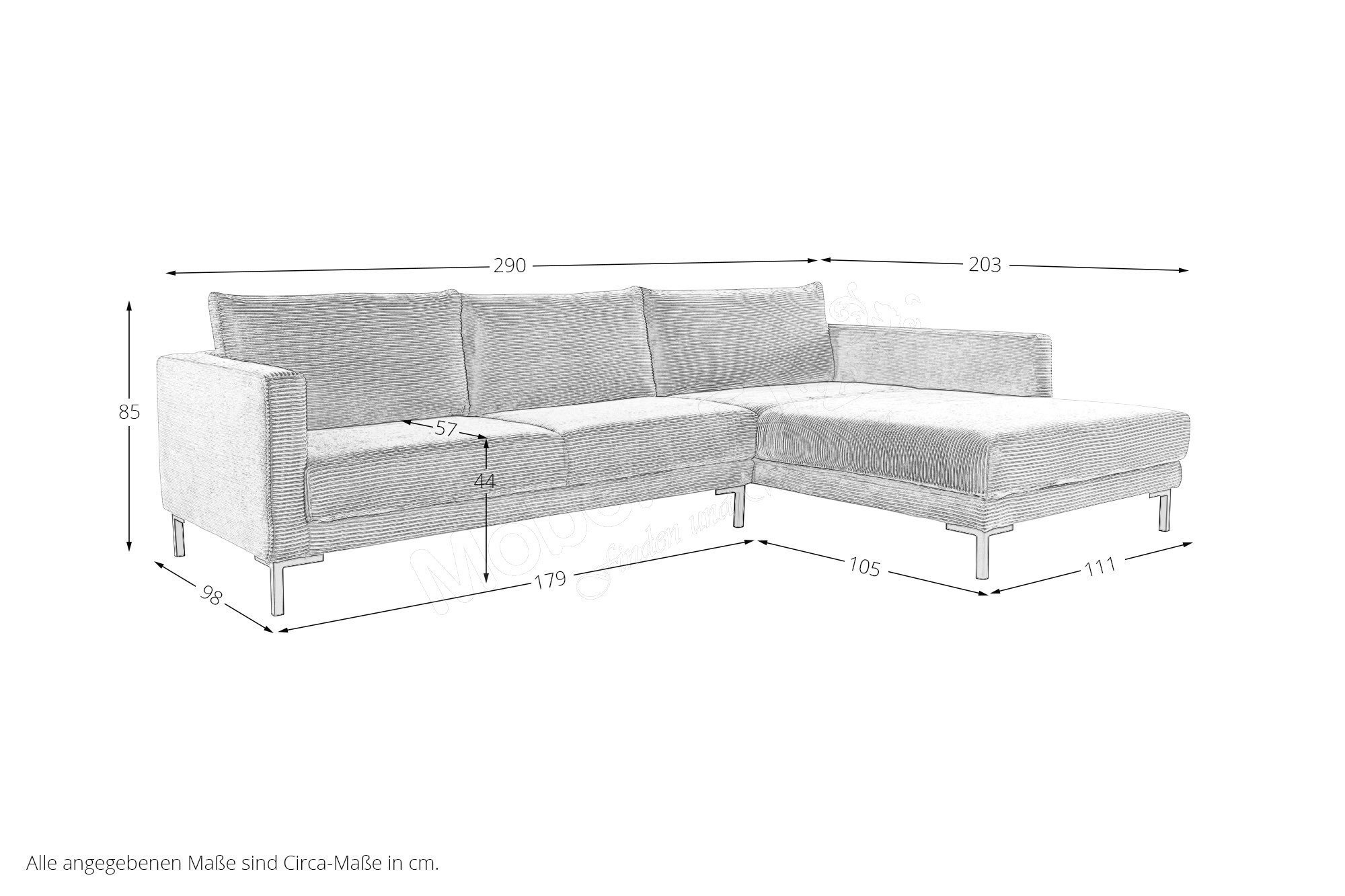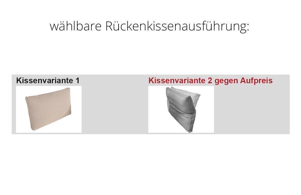 • Alle angegebenen Höhenmaße beziehen sich auf die Kissenvariante 1. Wird die Kissenvariante 2 (Funktionskissen) gewählt, erhöht sich die Gesamthöhe um ca. 25 cm.