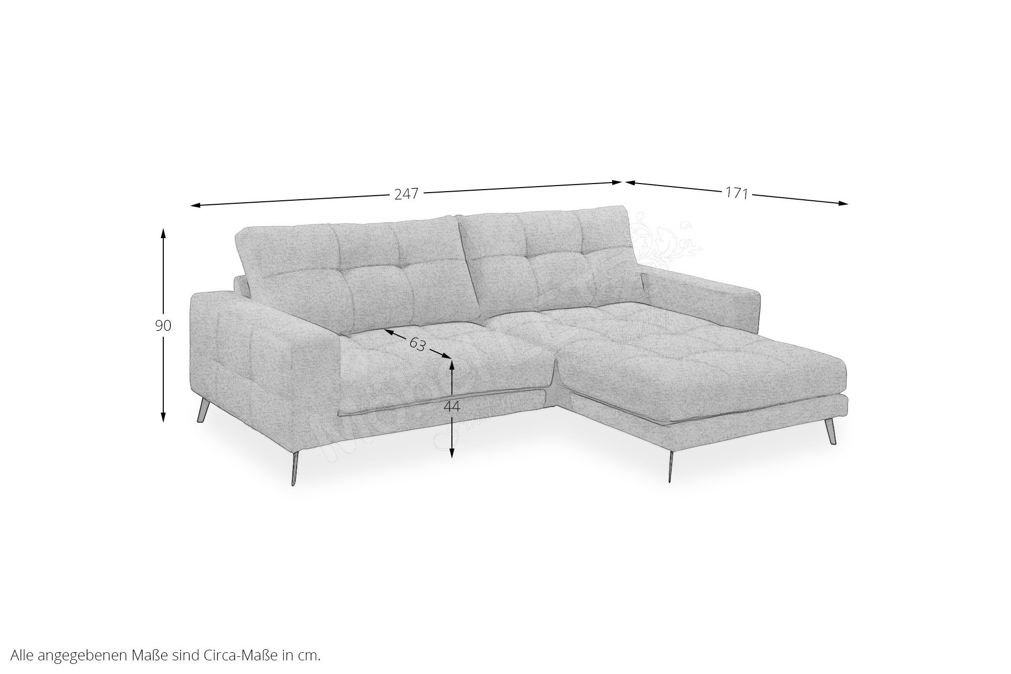 • Durch die Benutzung und im Laufe der Zeit kann die Polsterung etwas nachlassen. So entsteht eine gebrauchstypische, legere Polsterung. Diese wellige Oberfläche stellt keinen Qualitätsmangel dar, sondern ist modellbedingt gewollt und daher kein Beanstandungsgrund. Die Funktionalität des Möbelstücks wird dadurch nicht beeinträchtigt.