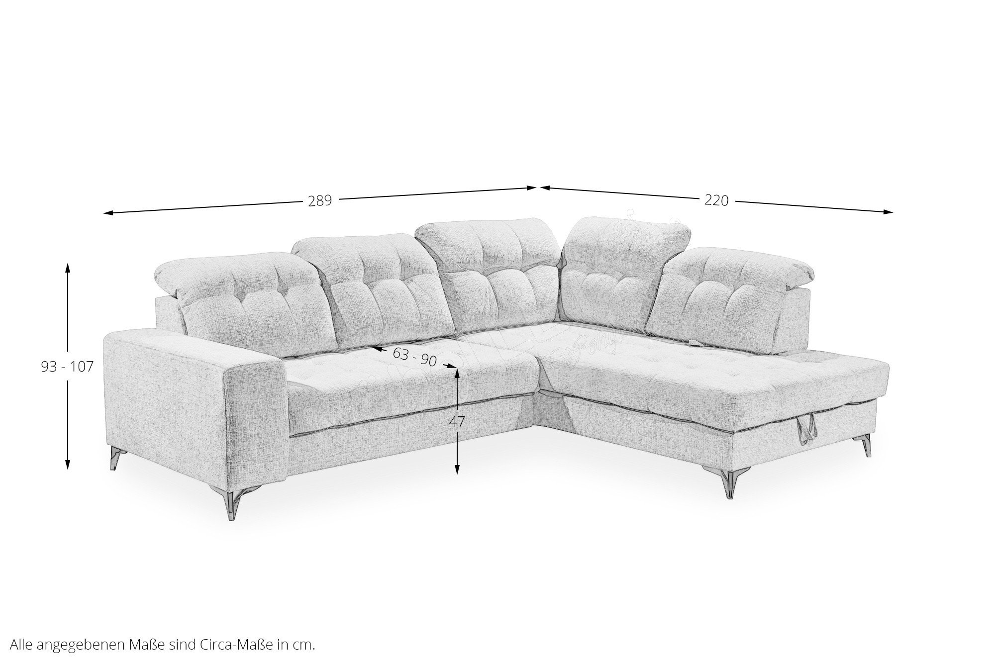 • Durch die Benutzung und im Laufe der Zeit kann die Polsterung etwas nachlassen. So entsteht eine gebrauchstypische, legere Polsterung. Diese wellige Oberfläche stellt keinen Qualitätsmangel dar, sondern ist modellbedingt gewollt und daher kein Beanstandungsgrund. Die Funktionalität des Möbelstücks wird dadurch nicht beeinträchtigt.