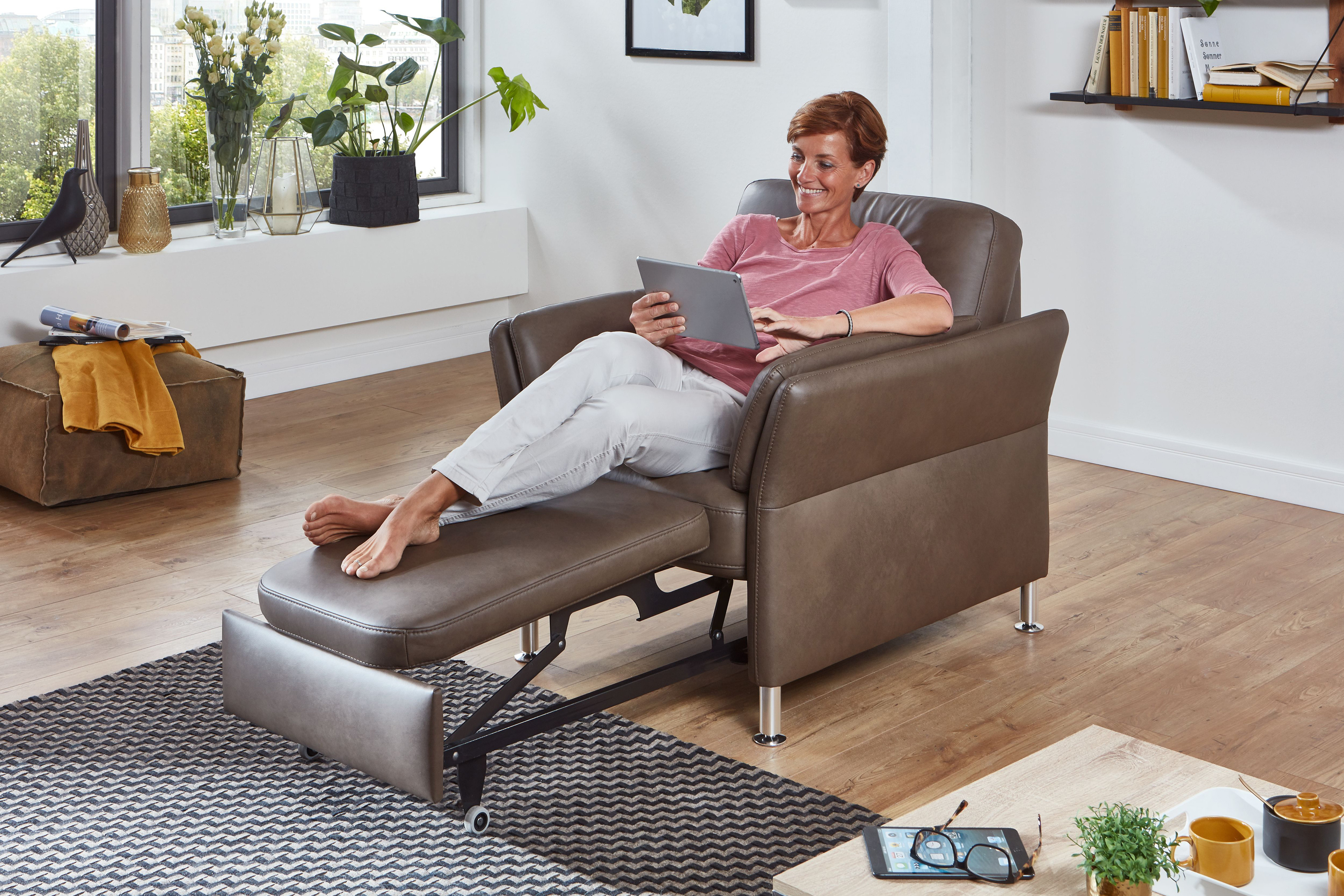 • Wird eine Schlaffunktion gewählt, dann ist die Liegefläche mit hochwertigem Matratzendrell bezogen und gegen Aufpreis echt bezogen lieferbar.