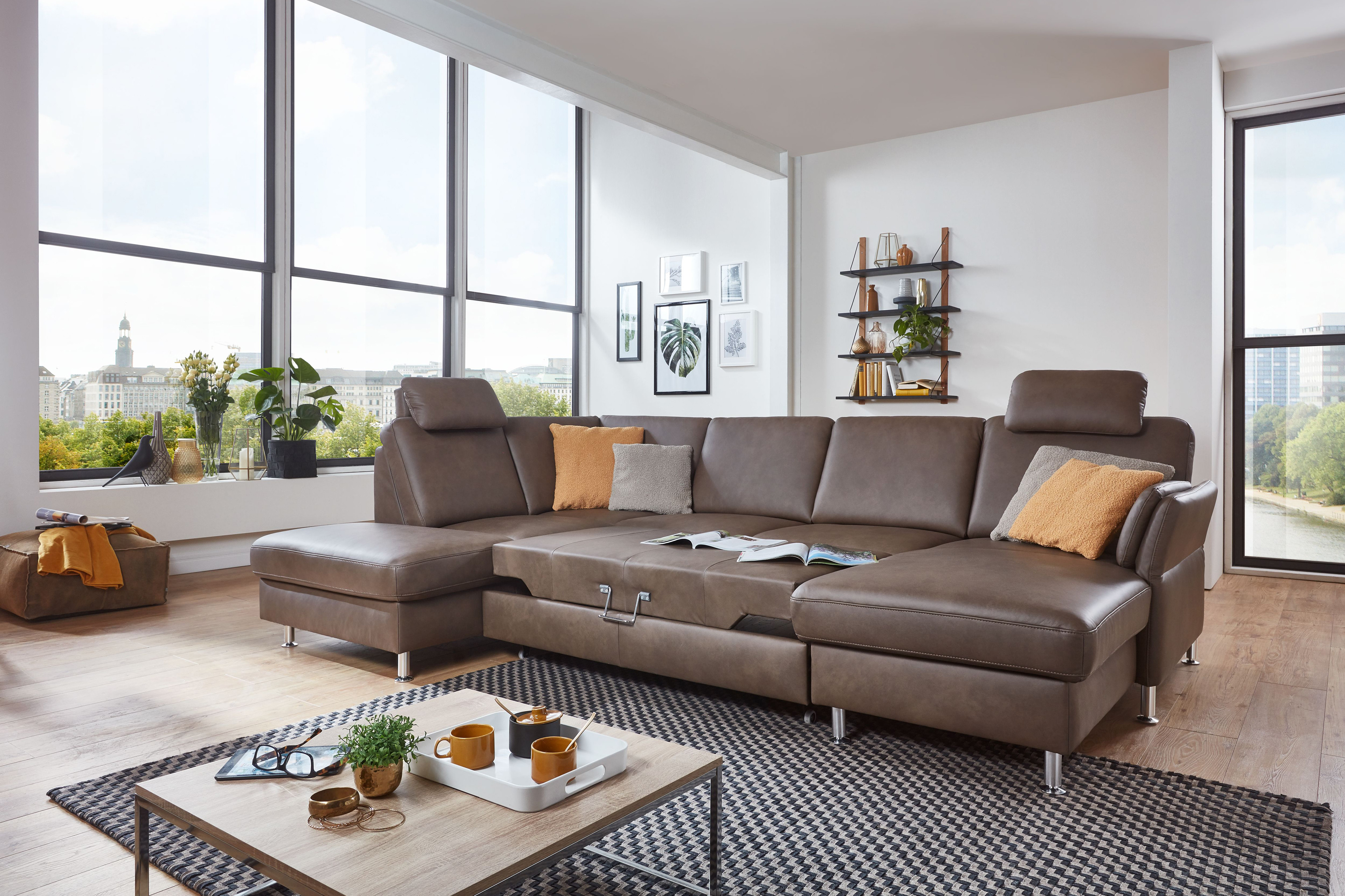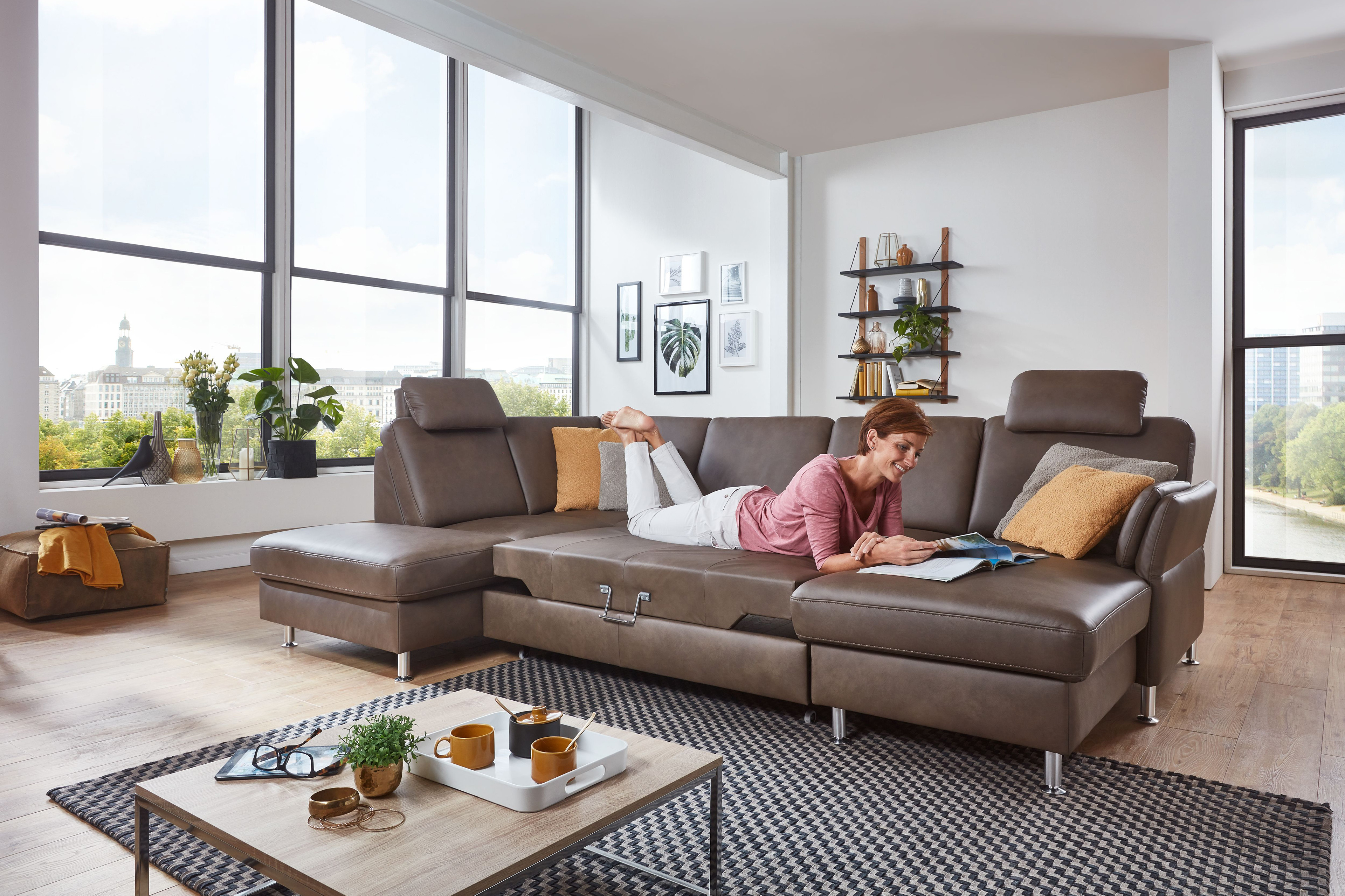 • Das Modell ist im Stoff-Bezug mehrfarbig, im Leder-Bezug jedoch nur einfarbig erhältlich. Faltenbildung ist ein normaler Prozess. Diese stellt keinen Qualitätsmangel dar, sondern ist modellbedingt gewollt und eine warentypische Eigenschaft. Bei der Boxspring-Polsterung erhöht sich die Sitzhöhe um ca. 2 cm und der Bettauszug hat eine geringe Maßabweichung in der Höhe zur Sitzfläche. Lassen Sie Ihr Haustier nicht unbeaufsichtigt mit Ihrem Möbelstück. Wir übernehmen keine Gewährleistung und auch keine Garantie dafür, dass Ihr mit einem der "Pfotenstoffe" bezogenes Polstermöbel nicht in irgendeiner Form durch Ihr Haustier beschädigt werden kann. Bitte beachten Sie die Nutzungs- und Pflegehinweise im Produktpass.