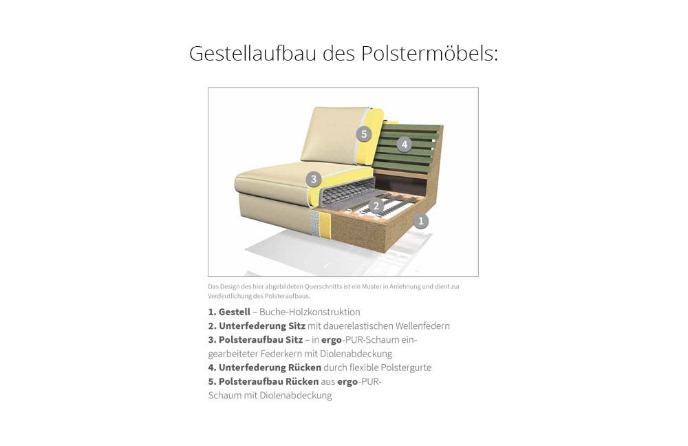 • Stoff und Leder dehnen sich im Gebrauch, "Wellen" können sich im Bezug bilden. Dies hat auf Gebrauch, Funktion und Lebensdauer keinen Einfluss und stellt keinen Sachmangel dar. Zier-, Kapp- oder Doppelnähte können in der Stoff- und Lederausführung unterschiedlich ausfallen. Herstellungsbedingt können Nähte im Stoffbezug entfallen oder durch einfache Nähte ersetzt werden. Die Struktur vom Naturmaterial Holz ist bei jeder Lieferung unterschiedlich. Bestellungen nach Farbmuster sind von Reklamationen und Umtausch ausgeschlossen. Bei den flexiblen Seitenteilen mit Rasterfunktion ist eine maximale Belastbarkeit bis 25 kg gewährleistet. Sie sind keine Sitzgelegenheit.